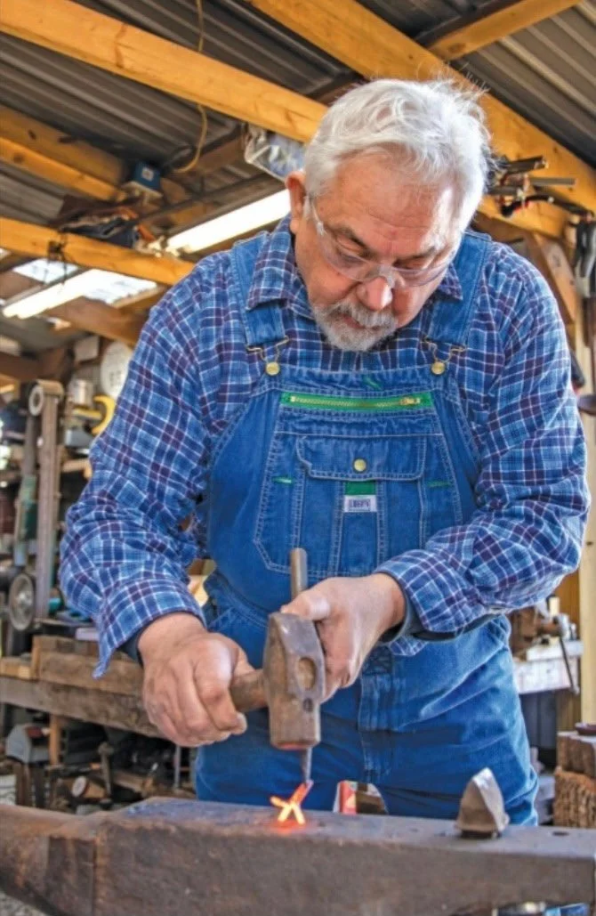 Verlin wanted to learn a craft to work on during his retirement, and he gathered the tools needed for his smithy. Soon after, the House brothers taught him how to make a Woodbury knife. Verlin later collaborated with a local Mennonite knifemaker to improve his skills.